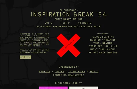This single pager for the next Epicurrence event keeps things simple. Gold-green text is a sophisticated alternative to yellow, on a black background, while maintaining a dramatic contrast.