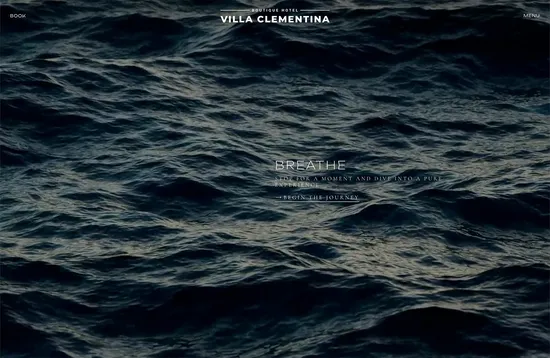 The approach here is to focus on the experience of staying in this boutique hotel on Lake Como. The angles on the display type used creates the impression of water, and the clickable hand-drawn style illustration is a pleasing feature.