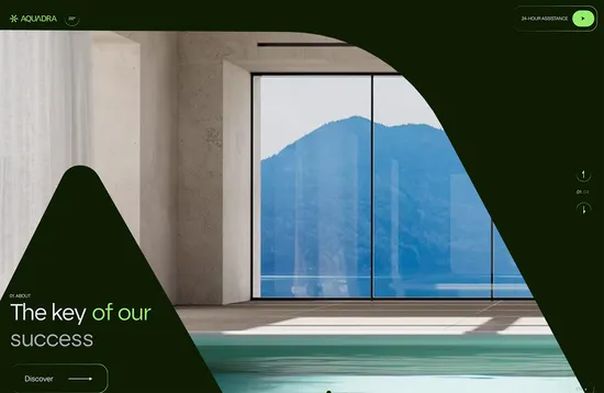 Animated masks and a fresh green-dominated color palette create a high-end, luxury feel in this plumbing contractor’s site.