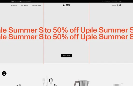 As a brand associated with good design for decades, it’s not very surprising that Alessi’s website is well done. It’s unfussy, easy to find what you’re looking for, and looks good.