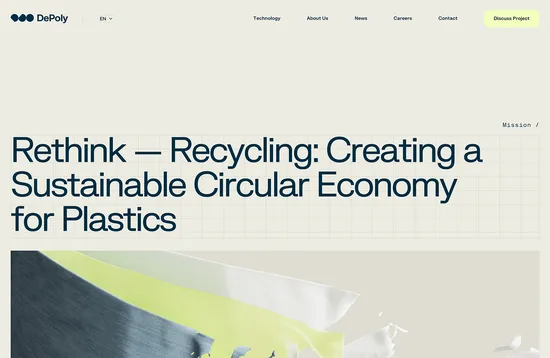 The challenge for DePoly was to modernize the concept of recycling. This is achieved with technical style icons, a soft, earthy color palette, and clean typography.