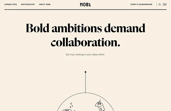 NOBL’s site utilizes illustration and a sharp display typeface to emphasize its difference from other business consultancies.