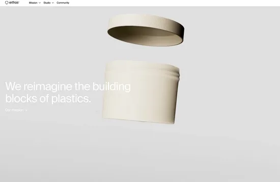Erthos is a biotechnology company creating bio-based plastic alternatives. The more detailed, technical content is presented with dark backgrounds, that contrast well with the light backgrounds elsewhere.