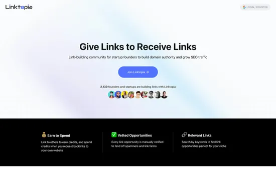 Linktopia describes itself as a link building community for founders. You submit blog articles to receive backlinks and send link requests to boost your SEO. All submissions are checked manually.