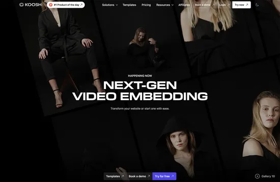Koosh simplifies video embedding using pre-designed templates for single and multiple videos. It also has options for adding interactions.