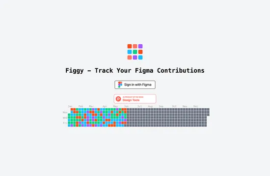 The Figgy web app helps you track your design contributions and monitor your productivity by displaying your Figma activity in a GitHub-style contribution chart.