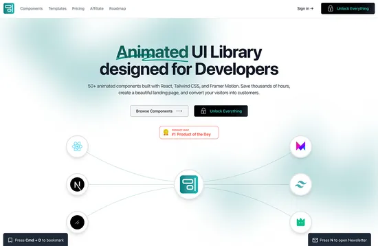 DynaUI is a set of animated components built with React, Tailwind CSS, and Framer Motion. The smaller components are free, while a one-off payment gets you page sections and templates.