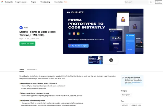 The Dualite plugin for exporting Figma to code has had a major update. The new features are Component Mode, for generating reusable code components, and Page Mode for converting animations and pages to code.