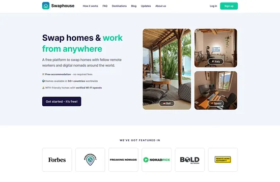 The trend of remote working is becoming increasingly common among designers and developers. This platform is designed for remote workers who wish to make the most of their location independence by arranging home swaps that meet their technical needs.