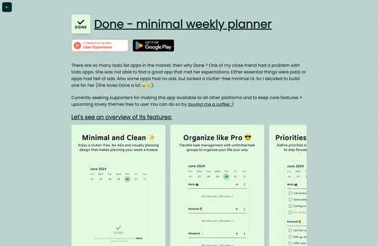 There are a ton of task managers and to-do lists out there, but Done is one of the simplest. It has a very minimal UI which at the same time is intuitive and easy to use. It allows you to create task groups, set reminders, and push unfinished tasks to the next day.