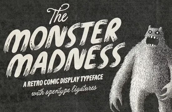 This fun, lettering font is clearly inspired by old monster movie posters. It comes in three variants, and includes Opentype ligatures.