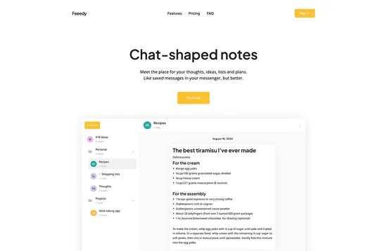 Feeedy is a notes app that offers the convenience of messaging apps with enhanced note-taking features.