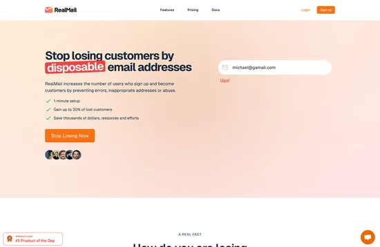 Email sign ups can go wrong for a number of reasons, like fake addresses and typos. RealMail provides email validation that is easily configurable and fast to implement.