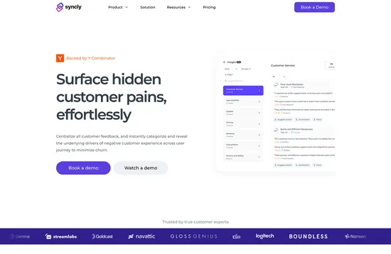 The Syncly platform could help you pinpoint and eliminate causes of customer dissatisfaction by using AI to analyze and categorize user feedback automatically.