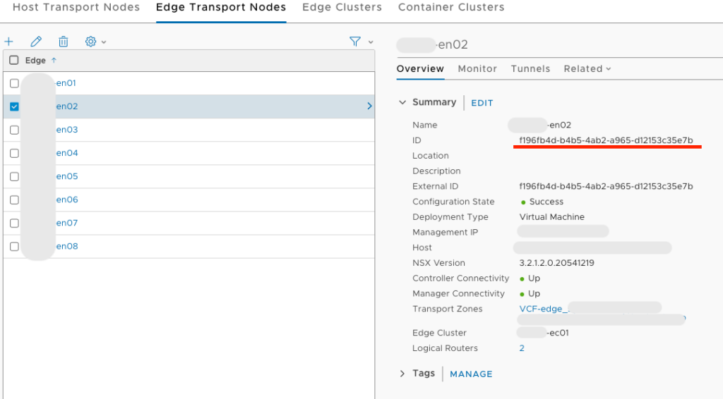 You can find <edge-ID> in System – Nodes – Edge Transport Nodes and click on the affected edge node:
